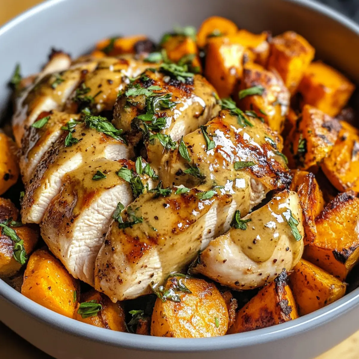Ahorn-Dijon-Hühnchen und Süßkartoffel-Schalen genießen