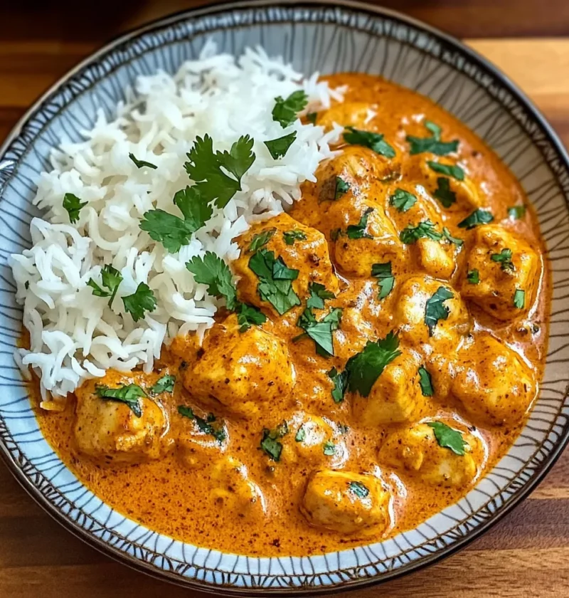 Butter Chicken ist ein nordindisches Gericht, das aus mariniertem Hähnchen besteht, das zuerst angebraten und anschließend in einer cremigen Tomaten-Buttersauce fertig gegart wird. Das Ergebnis ist zartes Fleisch in einer reichhaltigen, würzigen Sauce, die perfekt zu Reis oder Naan passt. Die Marinade macht das Fleisch besonders saftig, während die Sauce durch Butter, Gewürze und Sahne ihre samtige Textur erhält.
