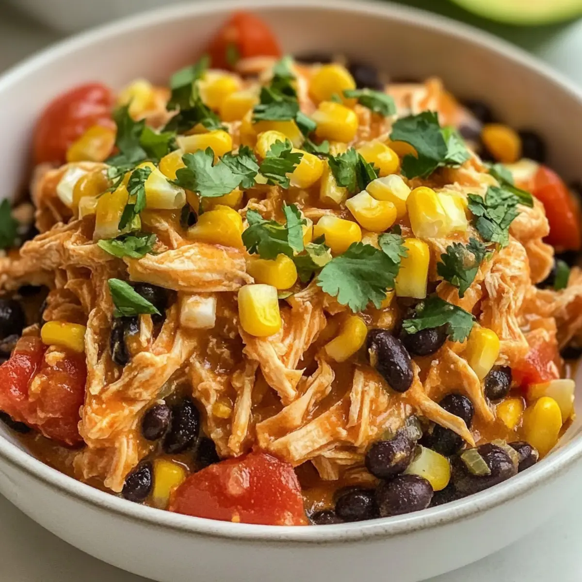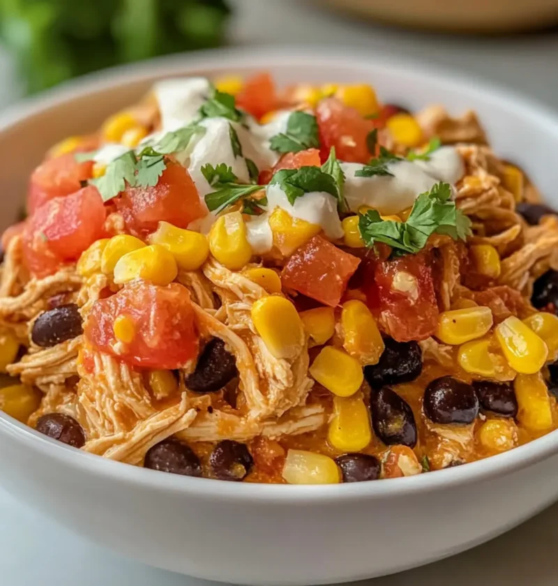 Ein köstliches Crockpot Fiesta Hähnchen Rezept, das zarte Hähnchenbrust und fröhliche Zutaten kombiniert – ideal für Familienfeiern.