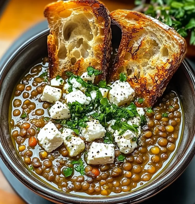 Diese französische Linsensuppe kombiniert einfache Zutaten zu einem harmonischen, aromatischen Gericht. Sie ist flexibel, nahrhaft und lässt sich schnell in einen vollständigen, ausgewogenen Teller verwandeln. Das knusprige Brot und der Feta sorgen für zusätzlichen Genuss und runden das Ganze ab.