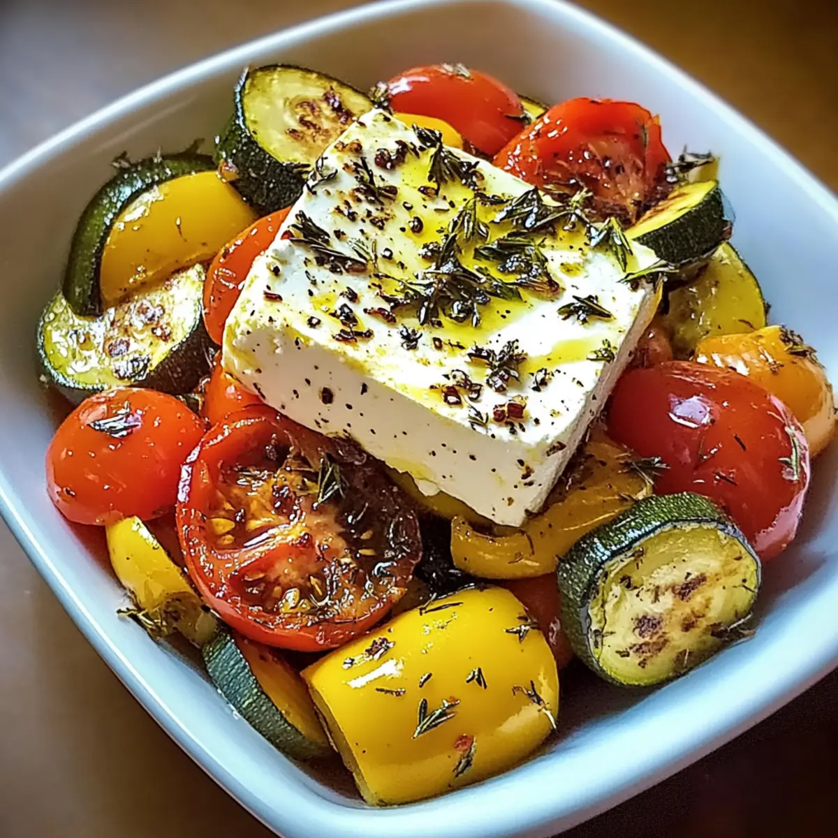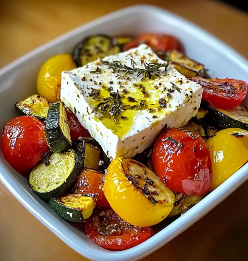 Kraftvolle Aromen: Der gebackene Feta schmilzt und entfaltet seine cremige Textur, während das knackige Gemüse, wie Zucchini und Paprika, eine unverzichtbare Frische bringt.