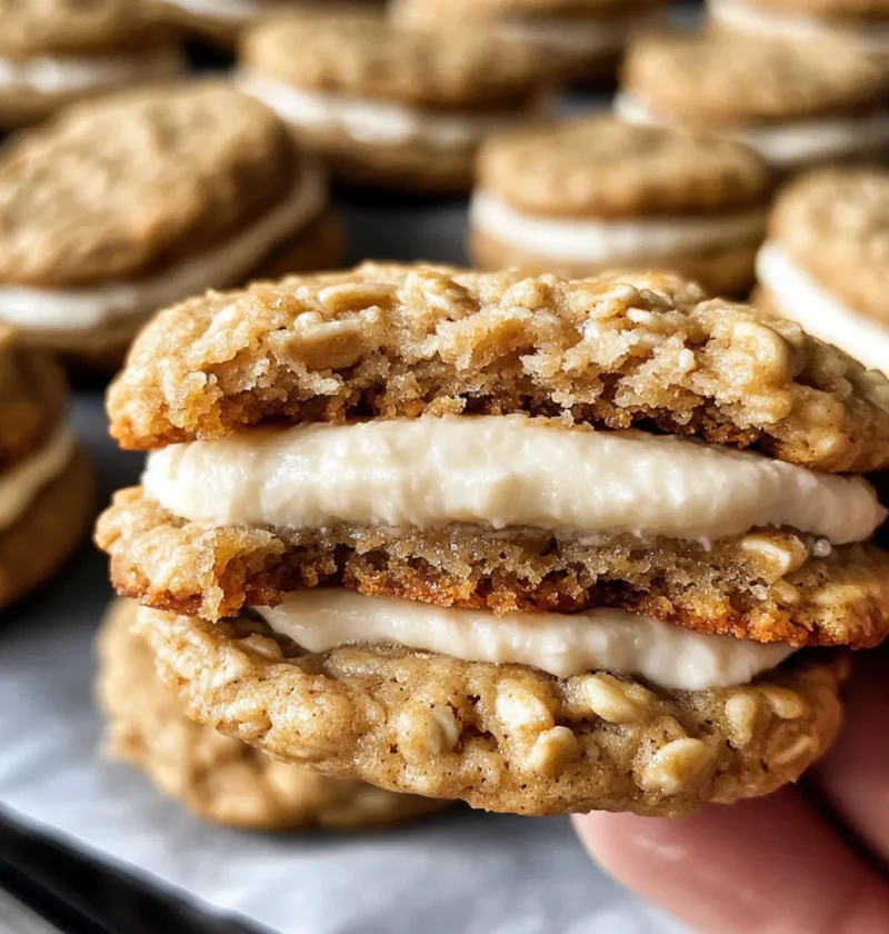 Haferflocken-Sandwich-Kekse mit weichem Frosting