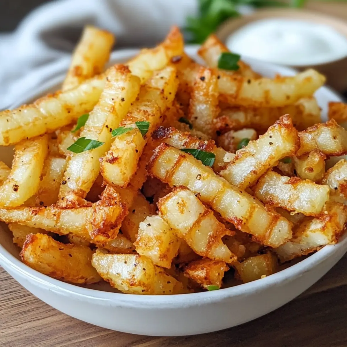 Knoblauch-Kräuter-Variante: Ergänze das Öl mit Knoblauchpulver und italienischen Gewürzen für einen aromatischen Twist. Diese Kombination ist immer ein Hit und lässt die Pommes noch köstlicher erscheinen.