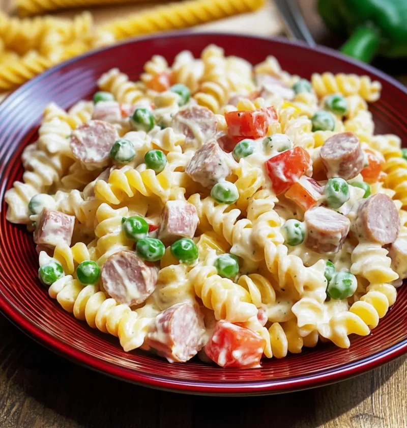 Achte bei der Auswahl der Gemüse und der Fleischwurst auf Frische. Deine Fusilli sollten keine dunklen Flecken oder Risse aufweisen, während die Erbsen eine leuchtend grüne Farbe haben sollten. Wenn du frische Erbsen verwendest, teste sie auf Süße und Knackigkeit. Und vergiss nicht, dass frische Paprika eine saftige Textur und leuchtende Farbe haben!