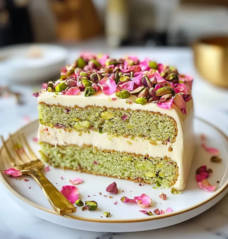 Exotischer Geschmack: Die Kombination aus nussigen Pistazien und duftendem Rosenwasser verleiht diesem Kuchen eine unverwechselbare Note, die dich direkt nach Istanbul entführt.