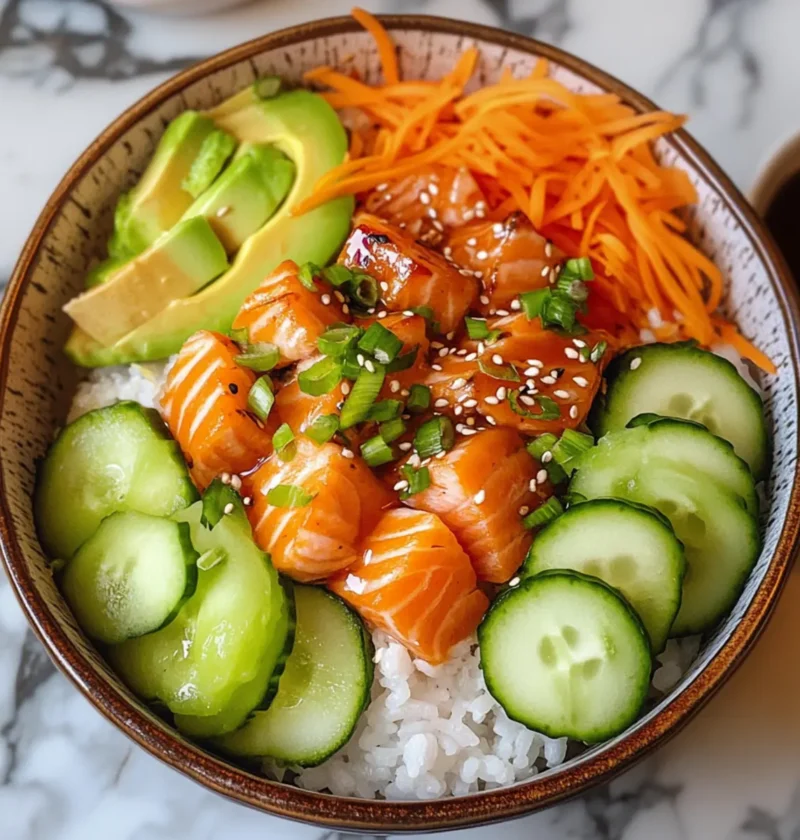 Vegetarisch: Ersetze den Lachs durch Tofu, mariniert in Sojasauce für einen herzhaften, pflanzlichen Genuss. Tofu nimmt die Aromen wunderbar auf und sorgt für eine füllende Variante.