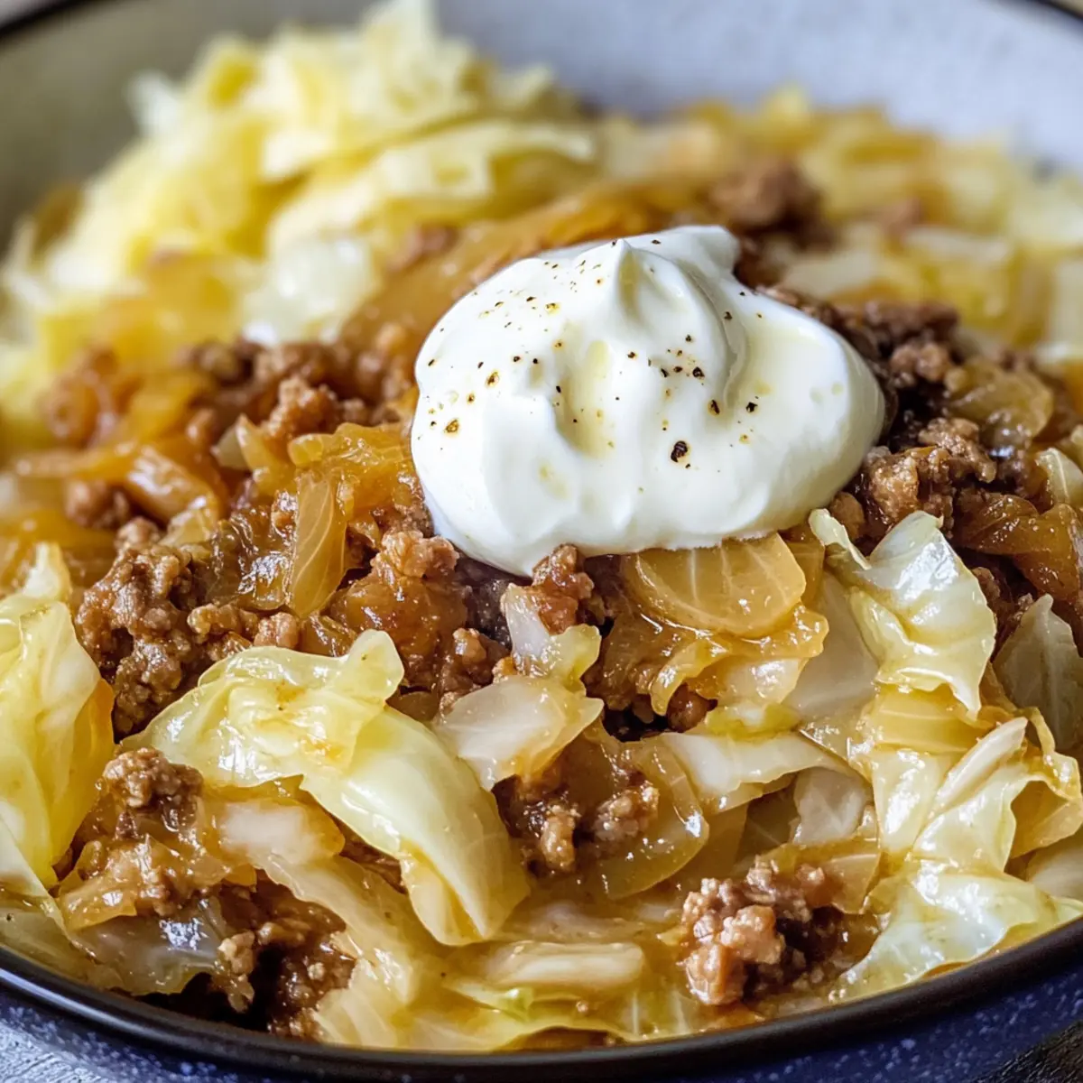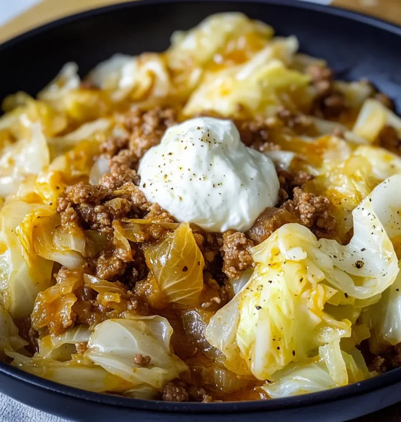 Lass das Gericht bei mittlerer Hitze aufkochen, reduziere dann die Hitze auf low, decke den Topf ab und lasse es 30-40 Minuten langsam köcheln. Der Kohl sollte weich und zart sein, während das Hackfleisch die ganzen Aromen aufnimmt. Rühre während des Garens gelegentlich um.