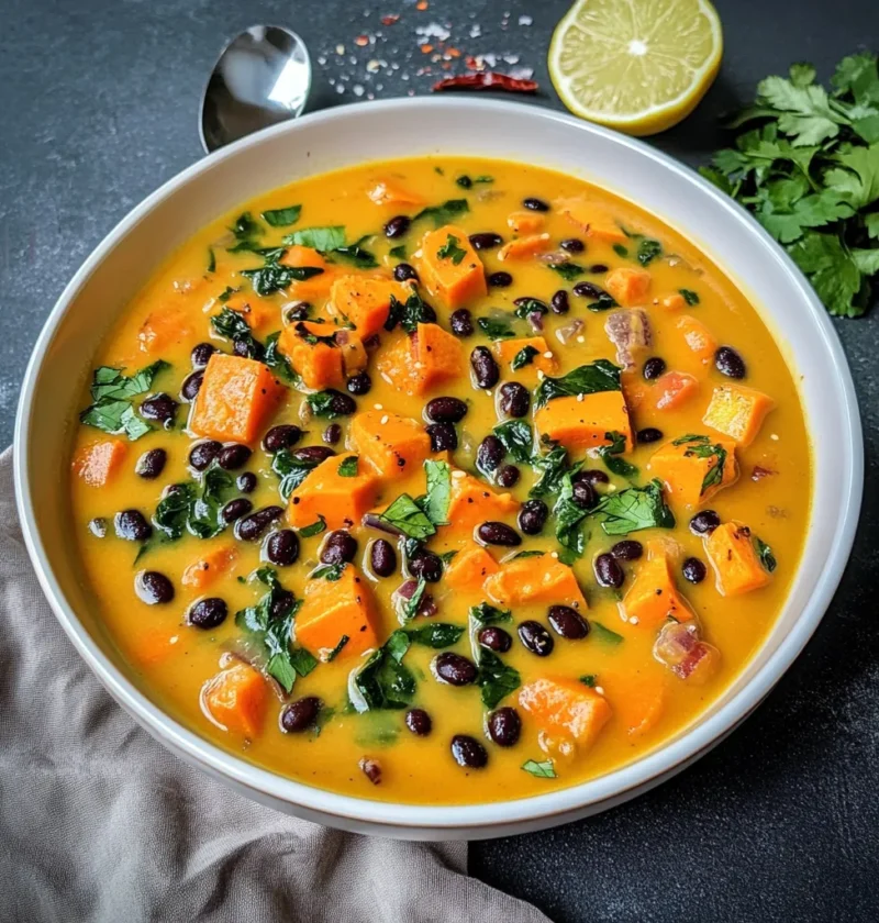 Die Schwarze-Bohnen- und Süßkartoffelsuppe ist eine sättigende, gesunde und aromatische Mahlzeit. Sie verbindet süße, herzhafte und würzige Noten auf köstliche Weise und ist in kurzer Zeit zubereitet. Ob für die Familie, zum Mitnehmen ins Büro oder als wohltuendes Abendessen – dieses Rezept wird schnell zum Lieblingsgericht für jede Jahreszeit.
