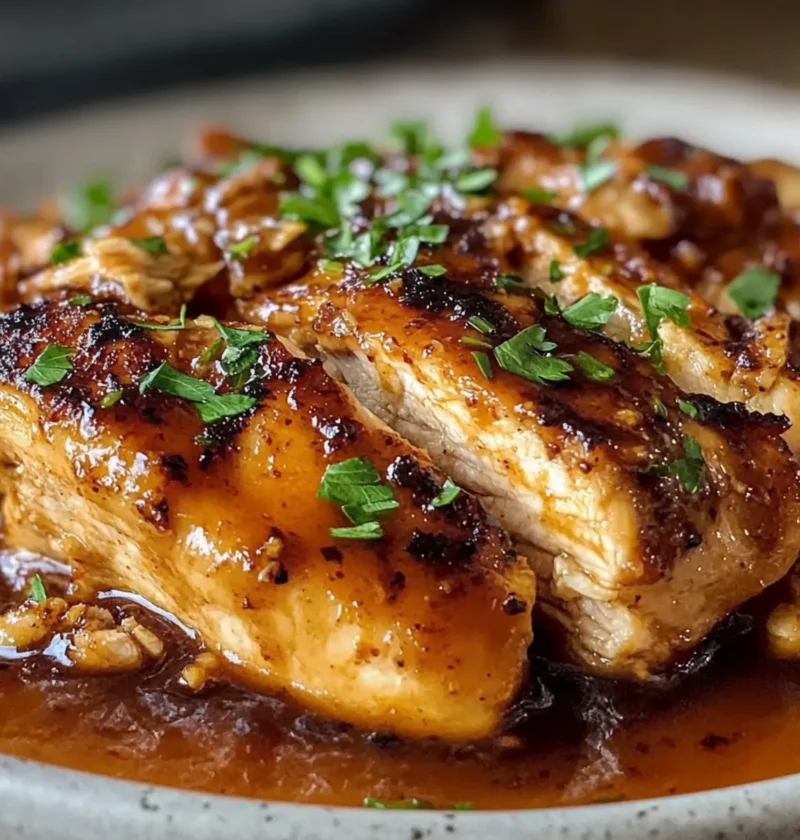 - Gieße die vorbereitete Sauce gleichmäßig über das Hähnchen.
