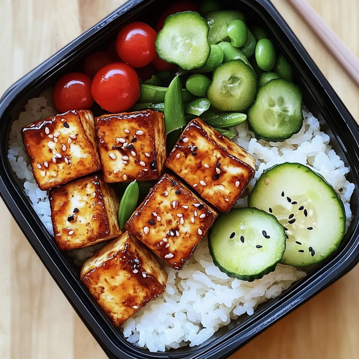 • Frische Zutaten: Verwende frisches Furikake-Gewürz und knackige Gemüse für den besten Geschmack in deiner Tofu Teriyaki Bento-Box.