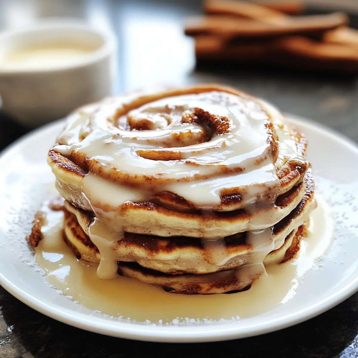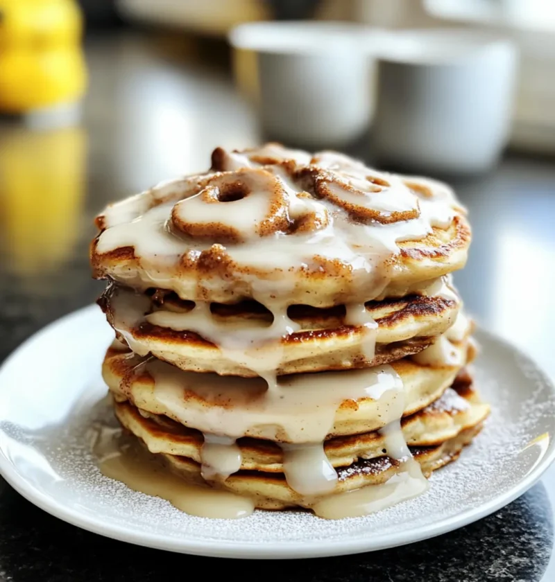 Genieße diese Zimtschnecken-Pfannkuchen, die mit einer köstlichen cremigen Glasur getoppt sind!